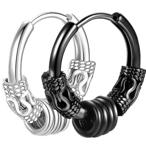 Unisex in acciaio inox cerchio orecchini all'ingrosso stile scuro con disegno drago motivo geometrico argento nero per gli uomini delle donne
