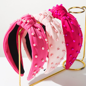 Hàn Quốc Phong Cách Phụ Nữ Thanh Lịch Headband Màu Hồng Ngọt Ngào Rộng Thắt Nút Ngọc Trai Tóc Phụ Kiện Cho Phụ Nữ
