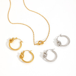 18K mạ vàng tối giản chống dị ứng thép không gỉ Hoop bông tai và vòng cổ thiết lập đa năng Knot thiết kế cho các bên