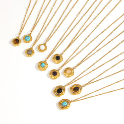Ins đồ trang sức thời trang 18K thép không gỉ Vòng cổ không xỉn màu ngọc lam đá tự nhiên Mặt dây chuyền vòng cổ